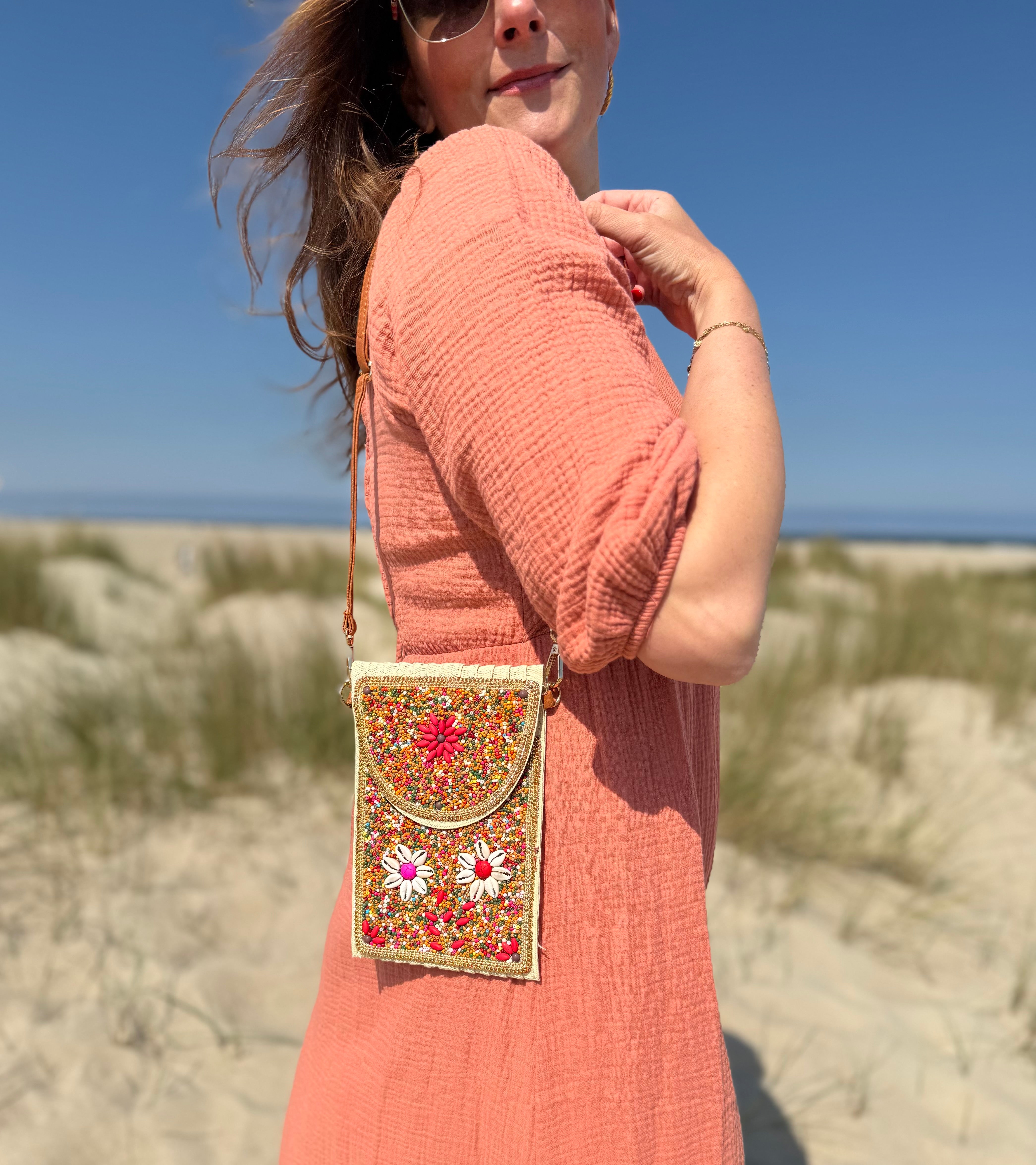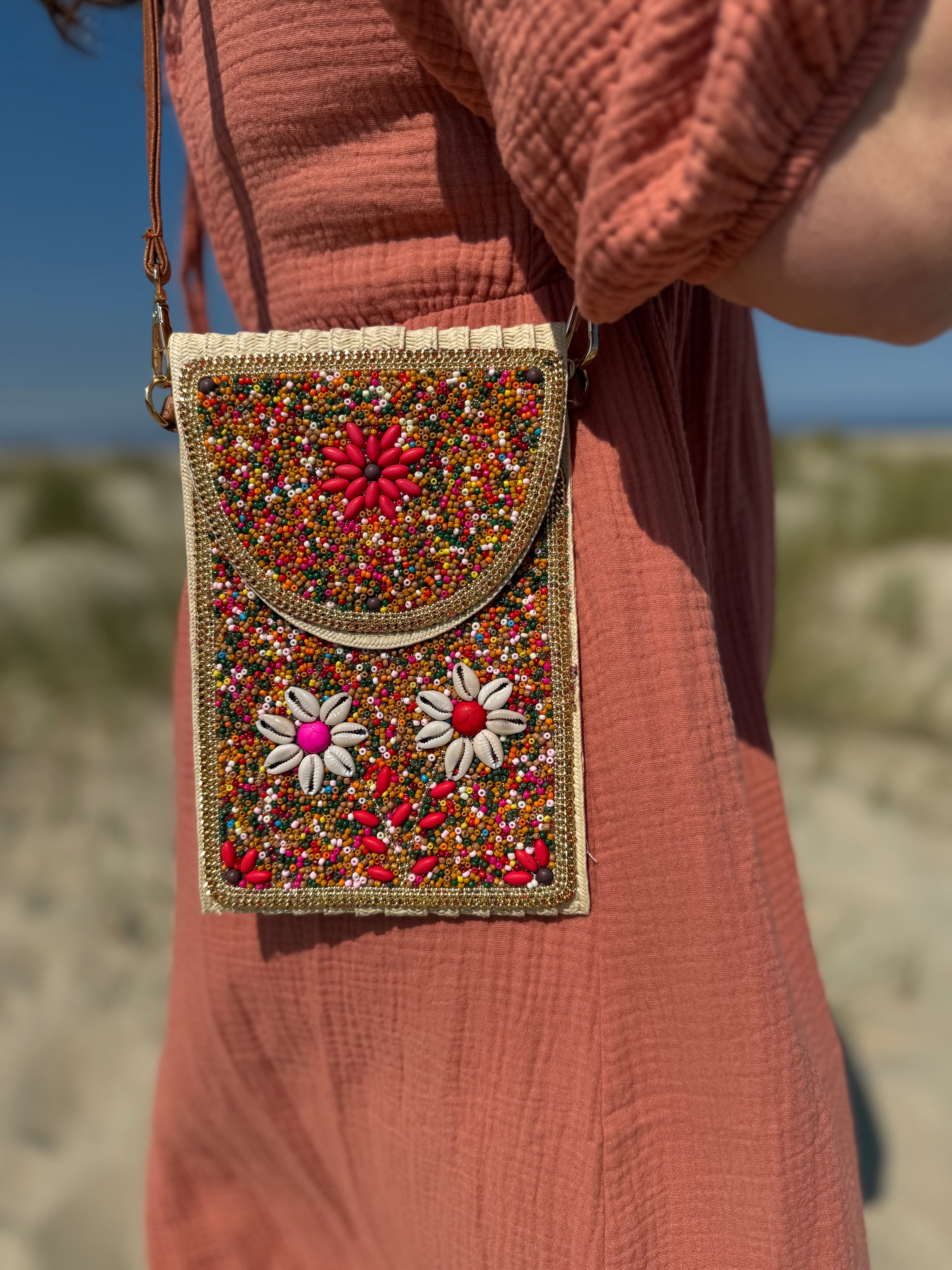 Diese kleine Handtasche im Indie Look ist ein echtes Statement-Piece. Mit ihren bunten Perlenverzierungen bringt sie Farbe und Lebensfreude in jedes Outfit. Die kompakte Größe bietet Platz für die wichtigsten Essentials wie Handy, mini Börse &  Lippenstift ;-)