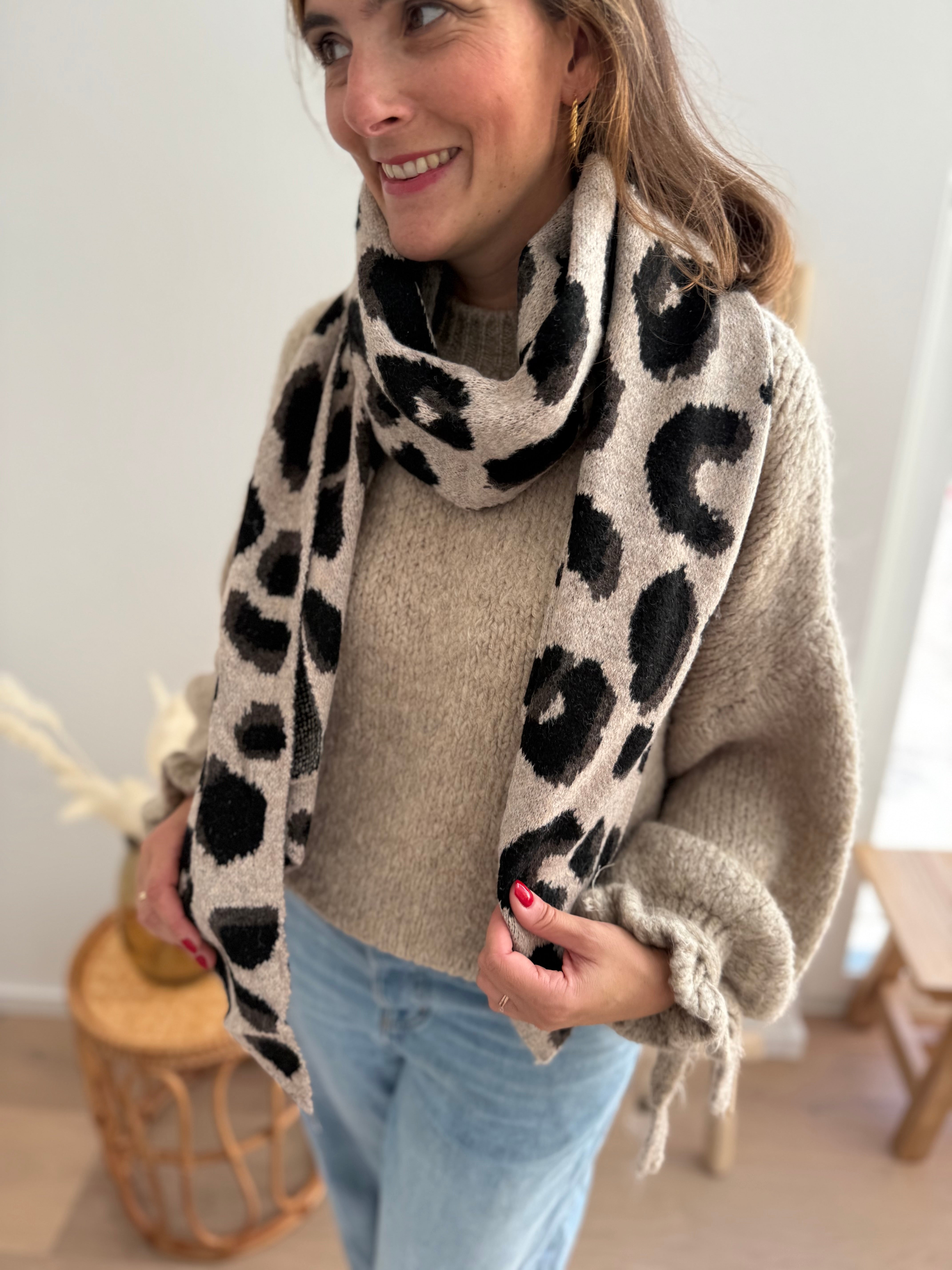 Dieser Schal im trendigen Leomuster ist das perfekte Accessoire für stylische Akzente. Sein weiches Material schmiegt sich angenehm an und hält an kühleren Tagen schön warm.