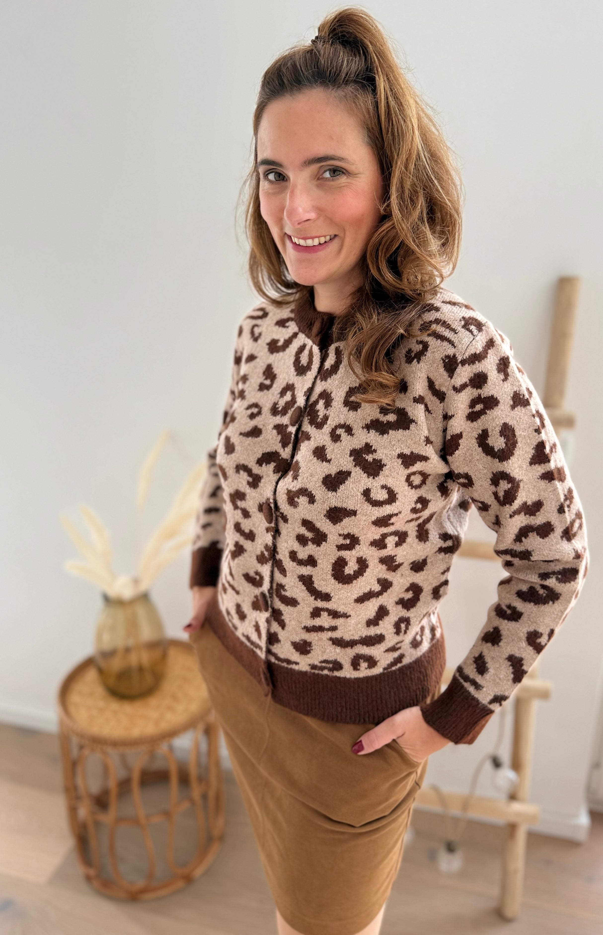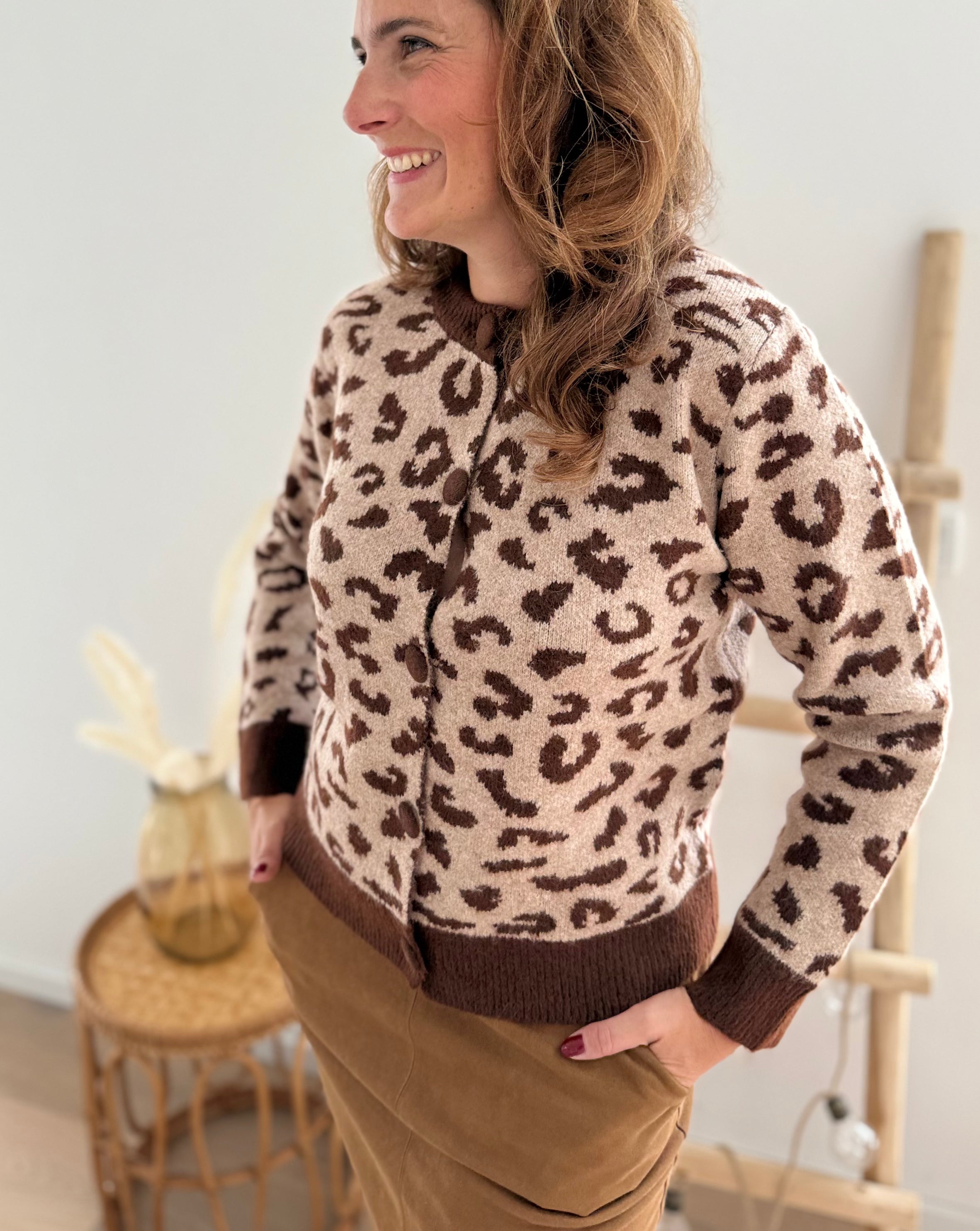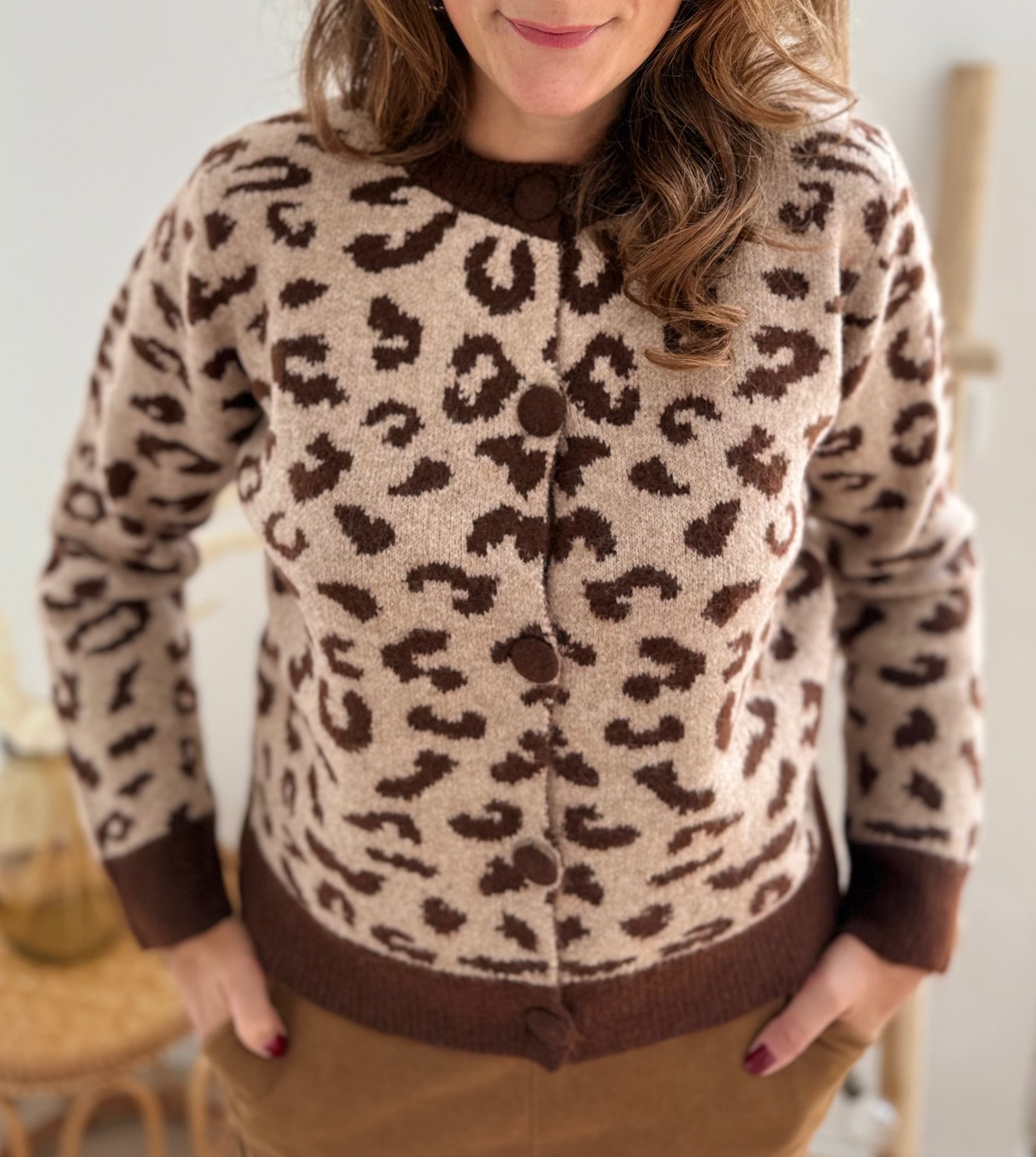 Diese Strickjacke mit trendigem Leoprint ist ein echter Eyecatcher. Der weiche Strick sorgt für Komfort und Wärme, während das markante Muster jedem Outfit einen stylischen Twist verleiht. Ob casual zur Jeans oder als Hingucker über einem Kleid – diese Jacke bringt modische Wildheit in deinen Look.