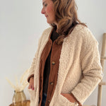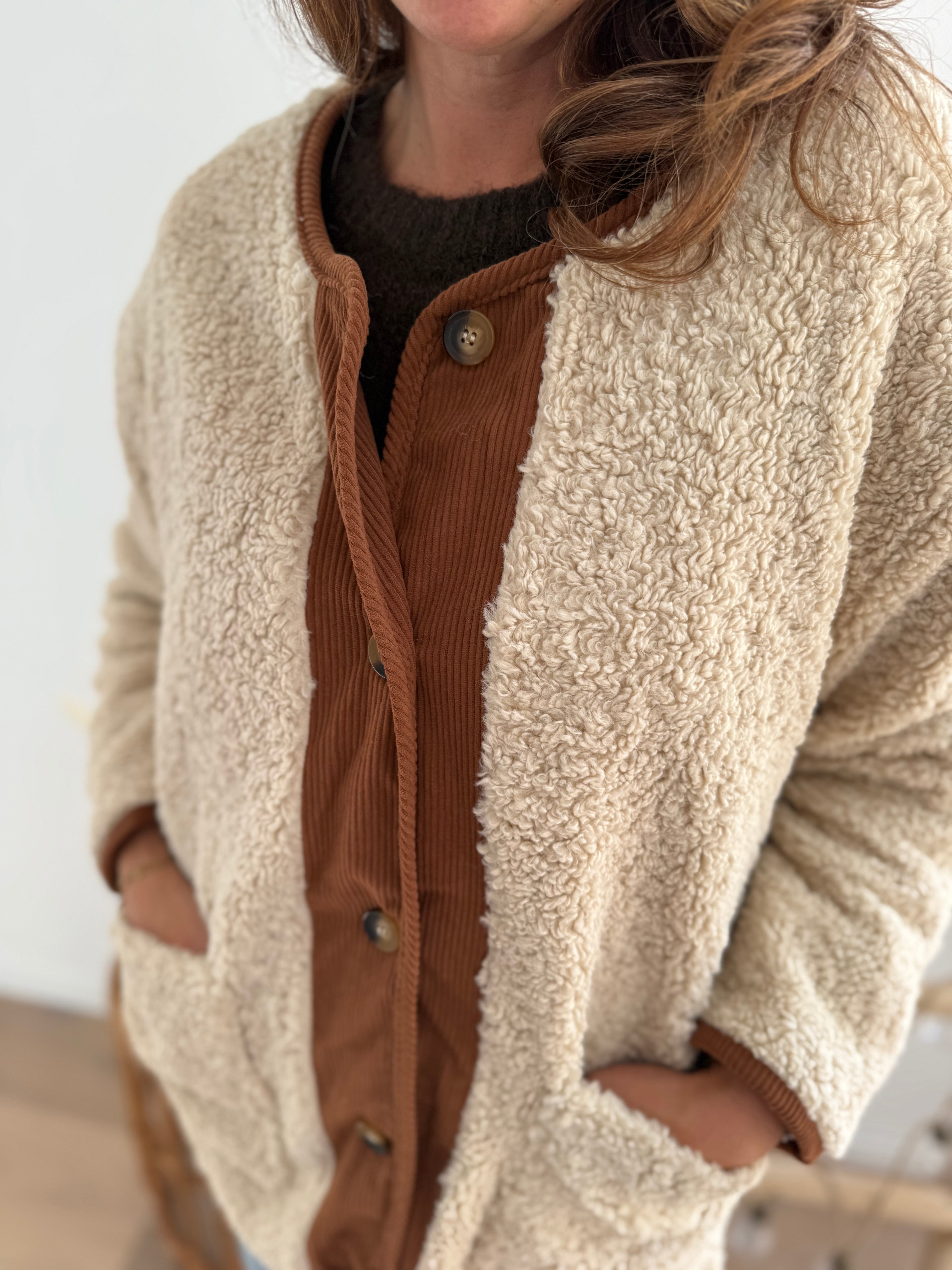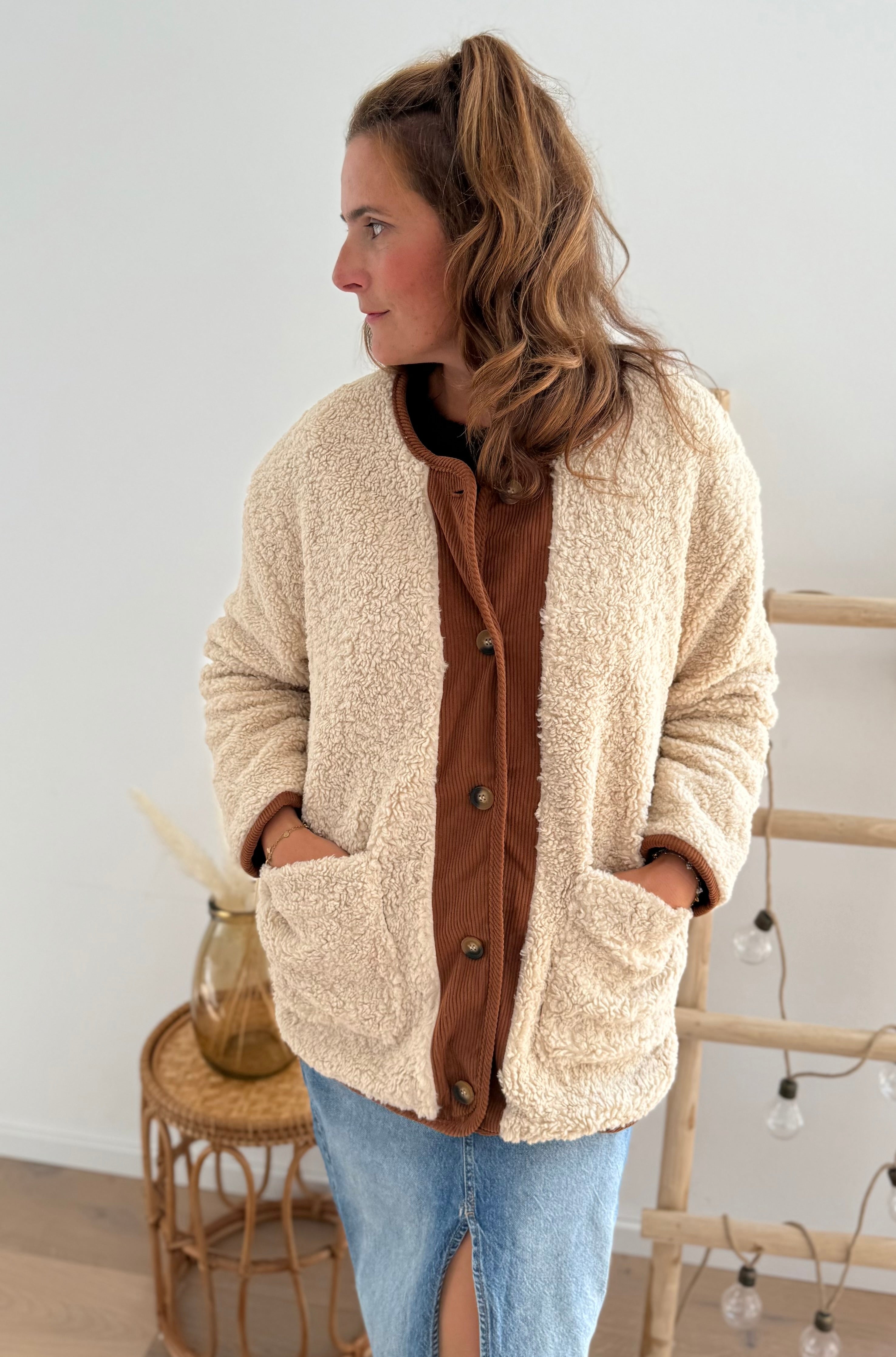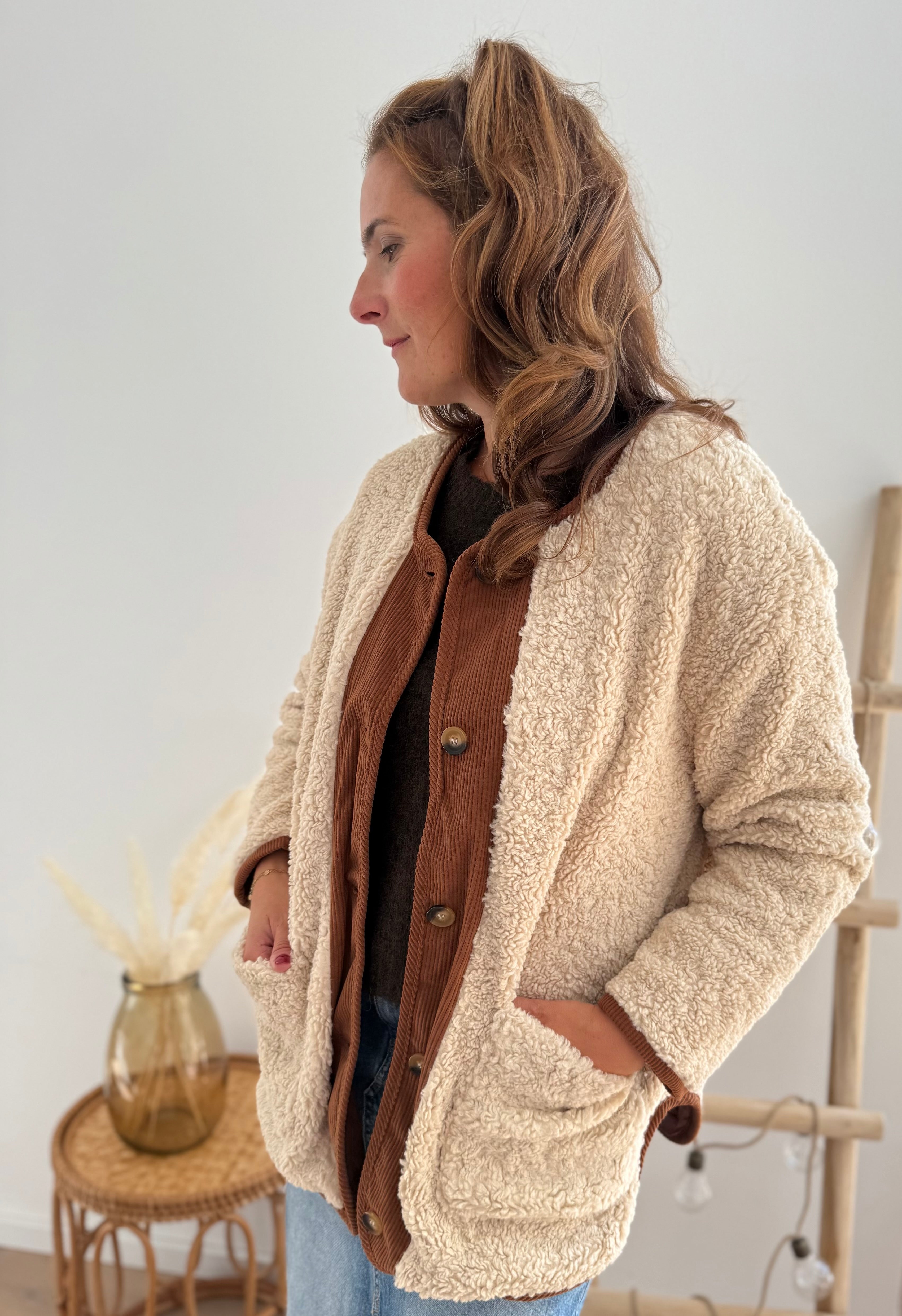 Diese Teddyjacke in Beige ist der perfekte Begleiter für gemütliche Herbsttage. Das flauschige Material hält angenehm warm, während die braunen Kordelemente stilvolle Kontraste setzen und der Jacke eine besondere Note verleihen. Mit ihrem lässigen Schnitt lässt sie sich vielseitig kombinieren – ob zur Jeans, über Strick oder zu Kleidern. Ein Lieblingsstück zum Einkuscheln und Wohlfühlen.